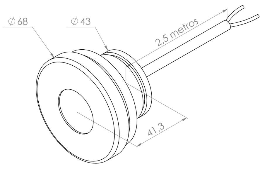 Potência: 10 Watts Grau de proteção: IP68 Composição: Aço 316L, Cobre e Poliacetal Acabamento: Usinado Driver: 12Vdc – Não incluso